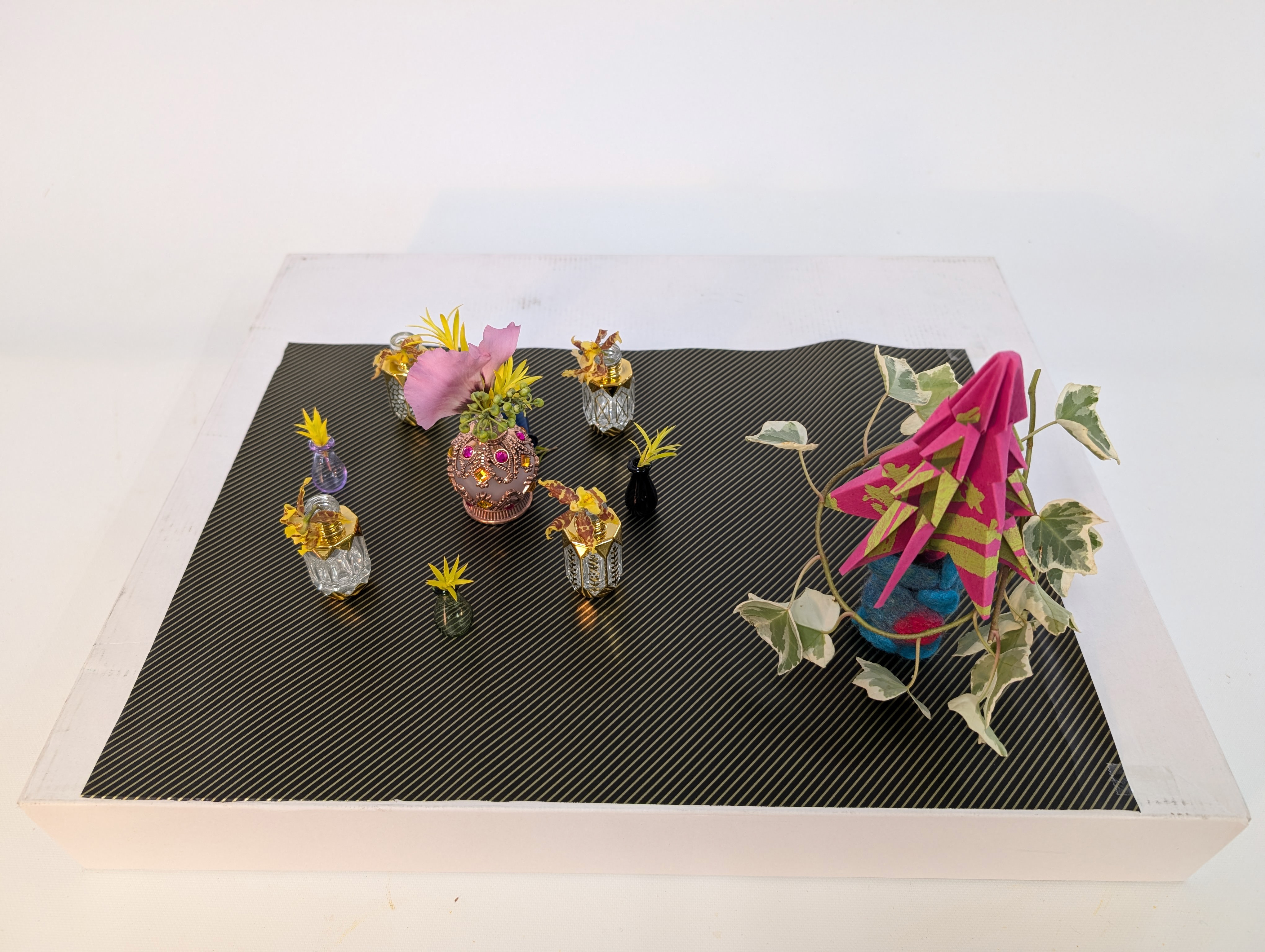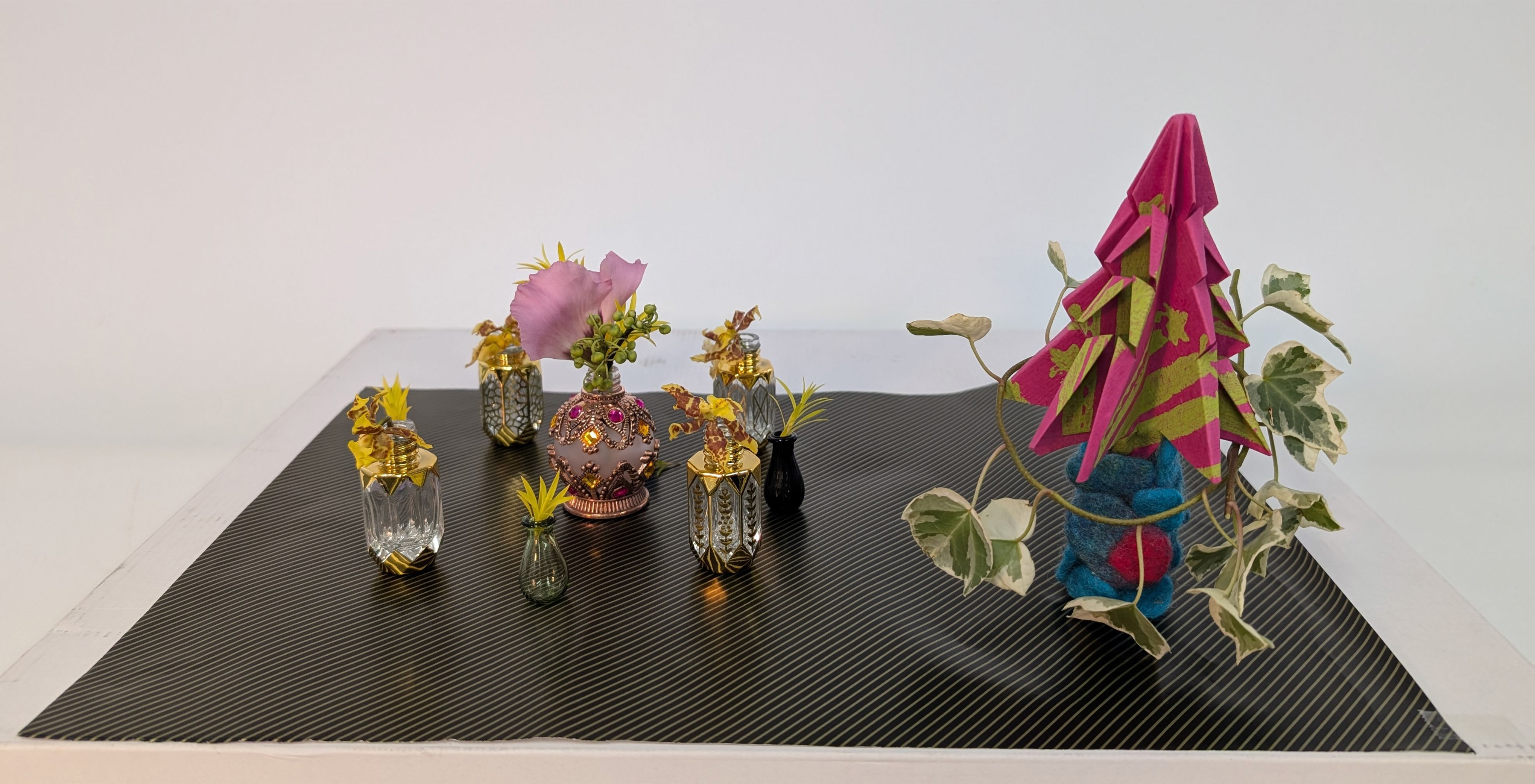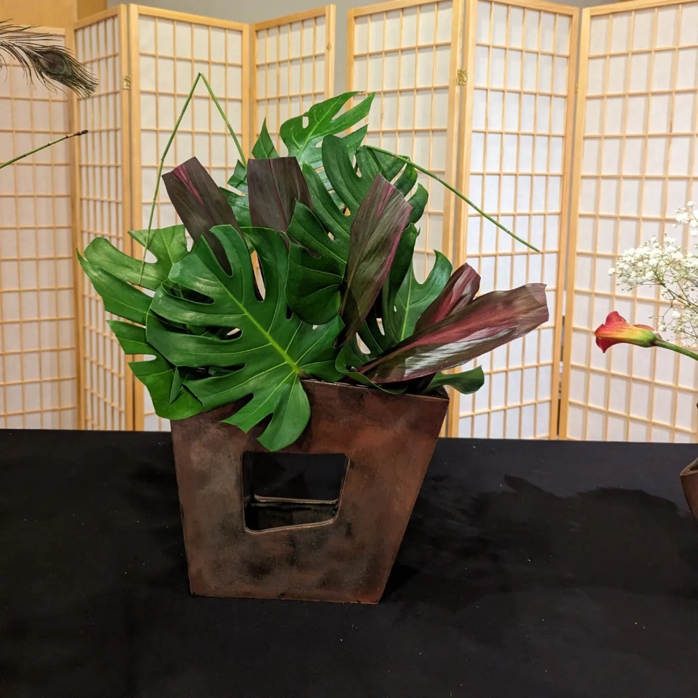 竹中麗湖先生のスタイリッシュ:スペース+花 受講舞台上のインスタレーション始め様々な生け花テクニックを学ぶ 生け花インターナショナルに入会 |